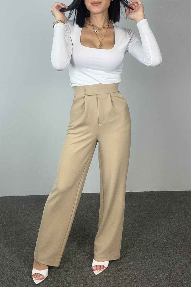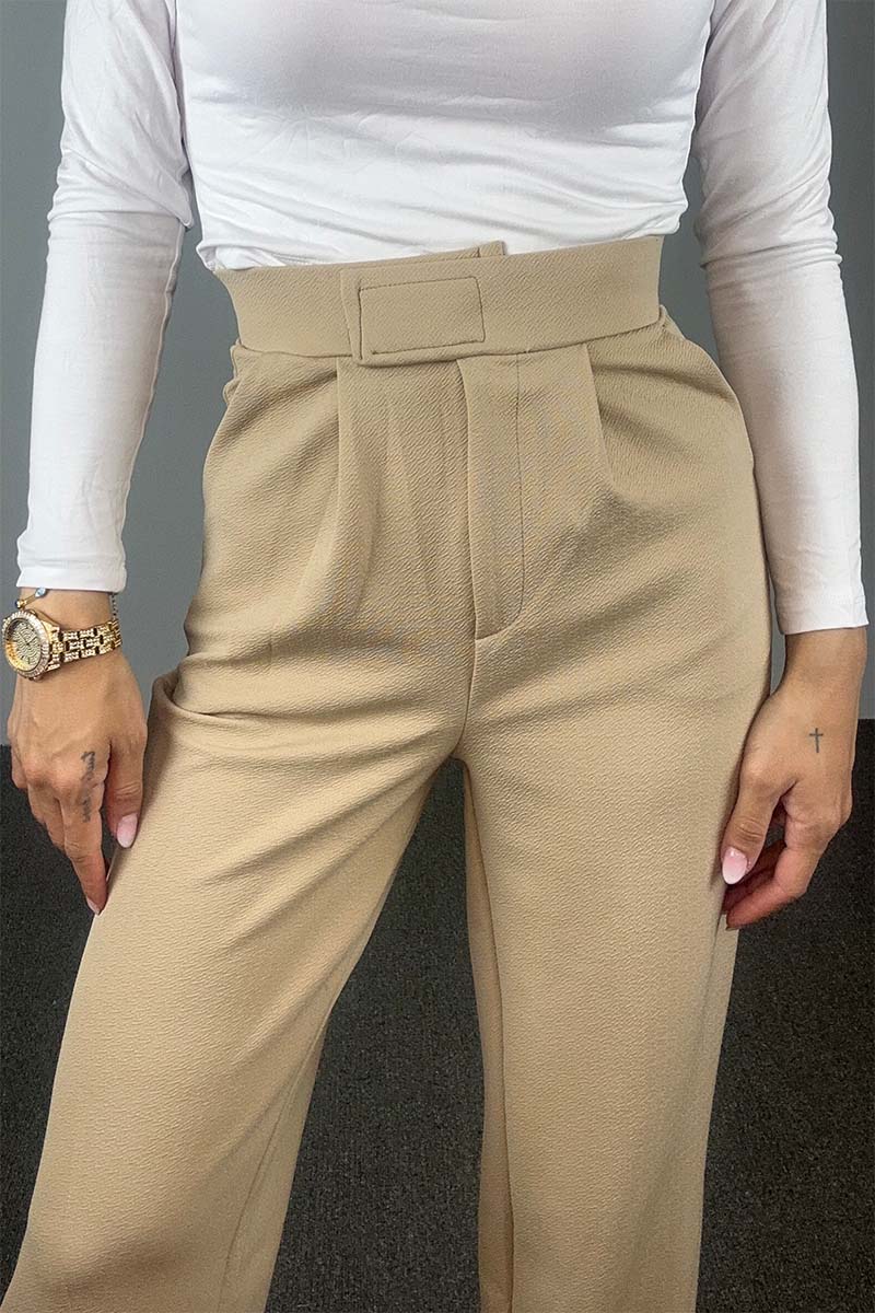 Ψηλόμεσο παντελόνι σε ίσια γραμμή, με διακριτικές πιέτες στο μπροστινό μέρος και μοντέρνο κλείσιμο με velcro (χρατς χρατς) και φερμουάρ. Το ελαστικό ύφασμά του προσφέρει άνεση και ευελιξία, ενώ η καθαρή γραμμή το κάνει ιδανικό για day-to-night εμφανίσεις.