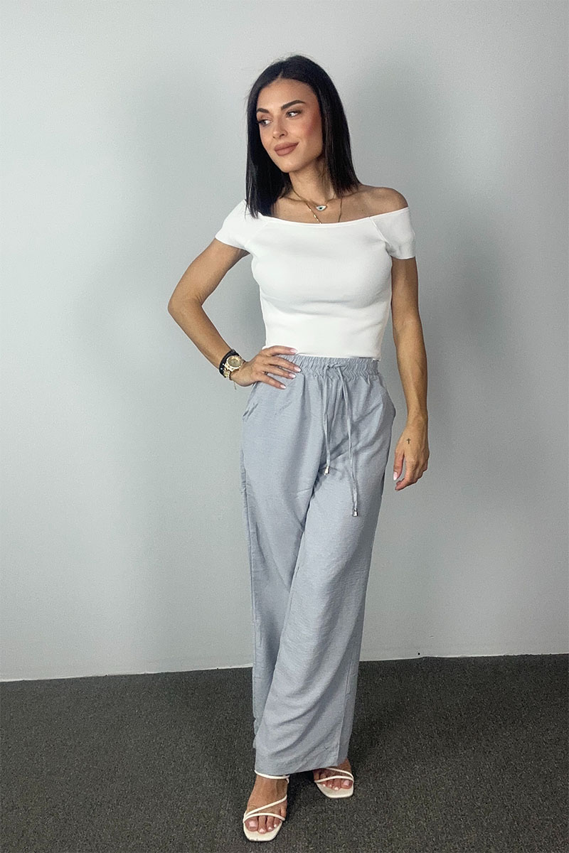 Ανάλαφρο ψηλόμεσο παντελόνι με φαρδιά γραμμή και μαλακή υφή. Διαθέτει ελαστική μέση με κορδόνι και πλαϊνές τσέπες για άνεση και πρακτικότητα. Ιδανικό για καθημερινές εμφανίσεις στην πόλη ή τις διακοπές, με δροσερή εφαρμογή και χαλαρό στιλ.