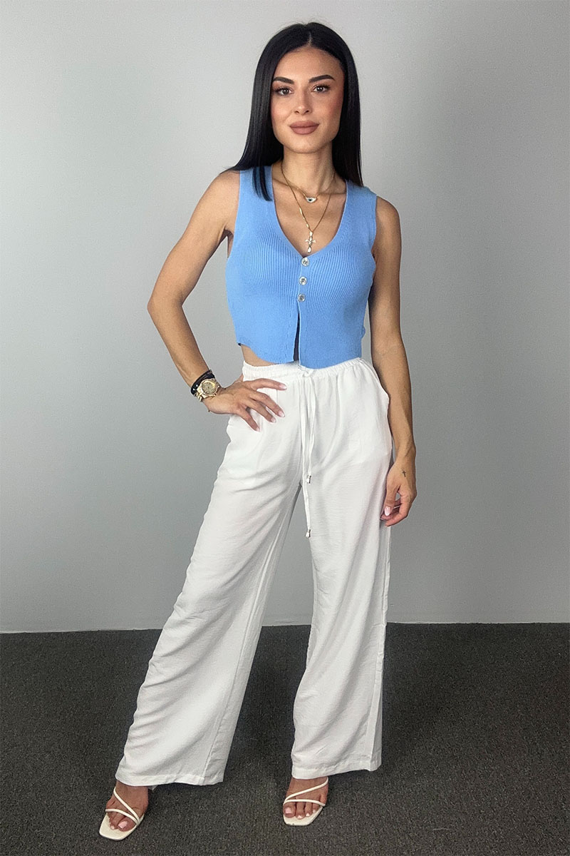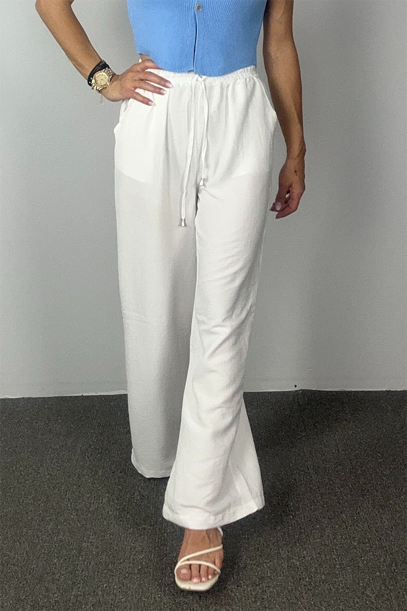 Ανάλαφρο ψηλόμεσο παντελόνι με φαρδιά γραμμή και μαλακή υφή. Διαθέτει ελαστική μέση με κορδόνι και πλαϊνές τσέπες για άνεση και πρακτικότητα. Ιδανικό για καθημερινές εμφανίσεις στην πόλη ή τις διακοπές, με δροσερή εφαρμογή και χαλαρό στιλ.