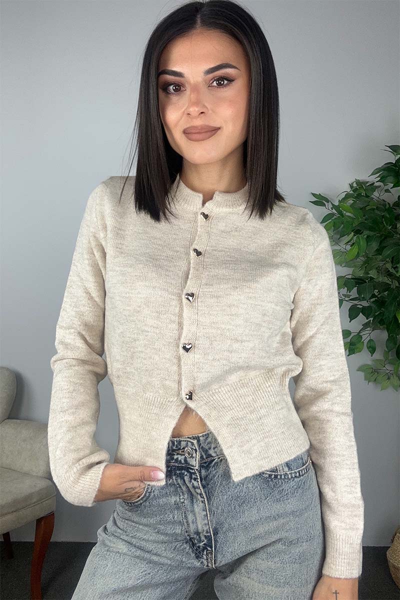 Η Naomi Cardigan είναι η ζακέτα που συνδυάζει απλότητα και ρομαντισμό με μια διακριτικά μοντέρνα αισθητική. Με απαλή υφή και ίσια γραμμή, προσφέρει άνεση και κομψότητα σε κάθε περίσταση. Τα κουμπιά-καρδιές προσθέτουν μια ιδιαίτερη λεπτομέρεια που κάνει τη διαφορά, ενώ η ελαστική πλέξη της εξασφαλίζει άψογη εφαρμογή.