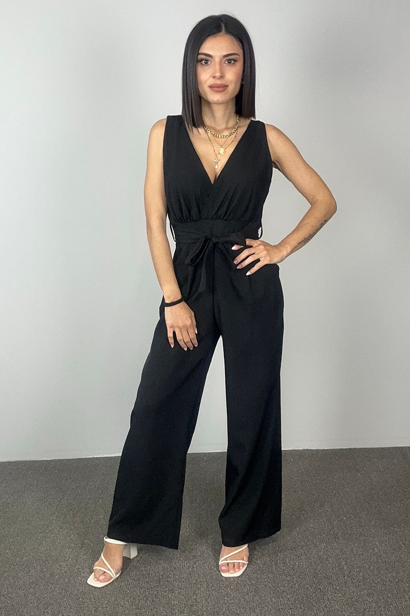 Λεπτομέρειες: Αμάνικη γραμμή, κρουαζέ V ντεκολτέ, ζώνη στη μέση, ισιο, φαρδύ παντελόνι