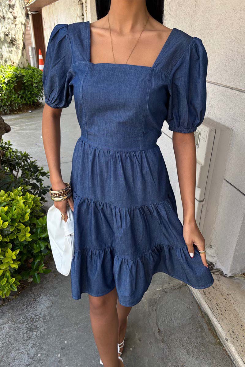Ανάλαφρο φόρεμα από ελαφρύ denim look, με εντυπωσιακή πλάτη και φιόγκο που δένει πίσω. Το “Palma Dress” έχει φουσκωτά μανίκια και θηλυκή γραμμή με βολάν, ιδανική για τις καλοκαιρινές σας εμφανίσεις. Διαθέσιμο σε ανοιχτό και σκούρο denim.