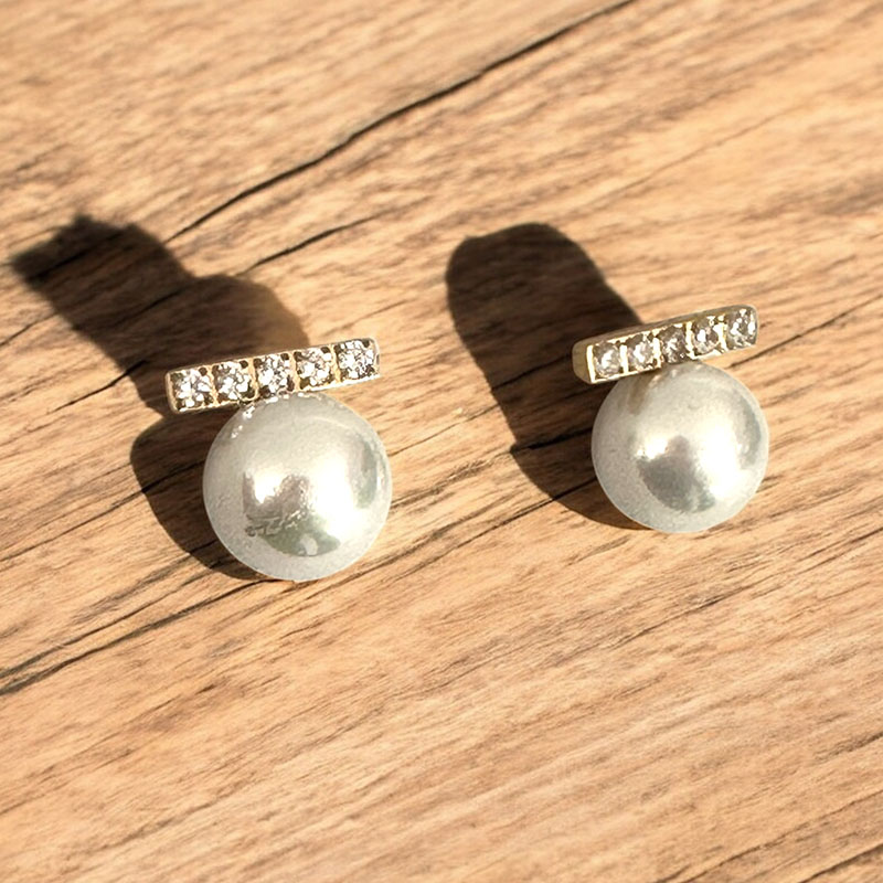 Minimal καρφωτά σκουλαρίκια με λευκή πέρλα και διακοσμητική λεπτομέρεια από στρας στο επάνω μέρος. Κομψά και διακριτικά, ιδανικά για κάθε περίσταση από το πρωί έως το βράδυ.