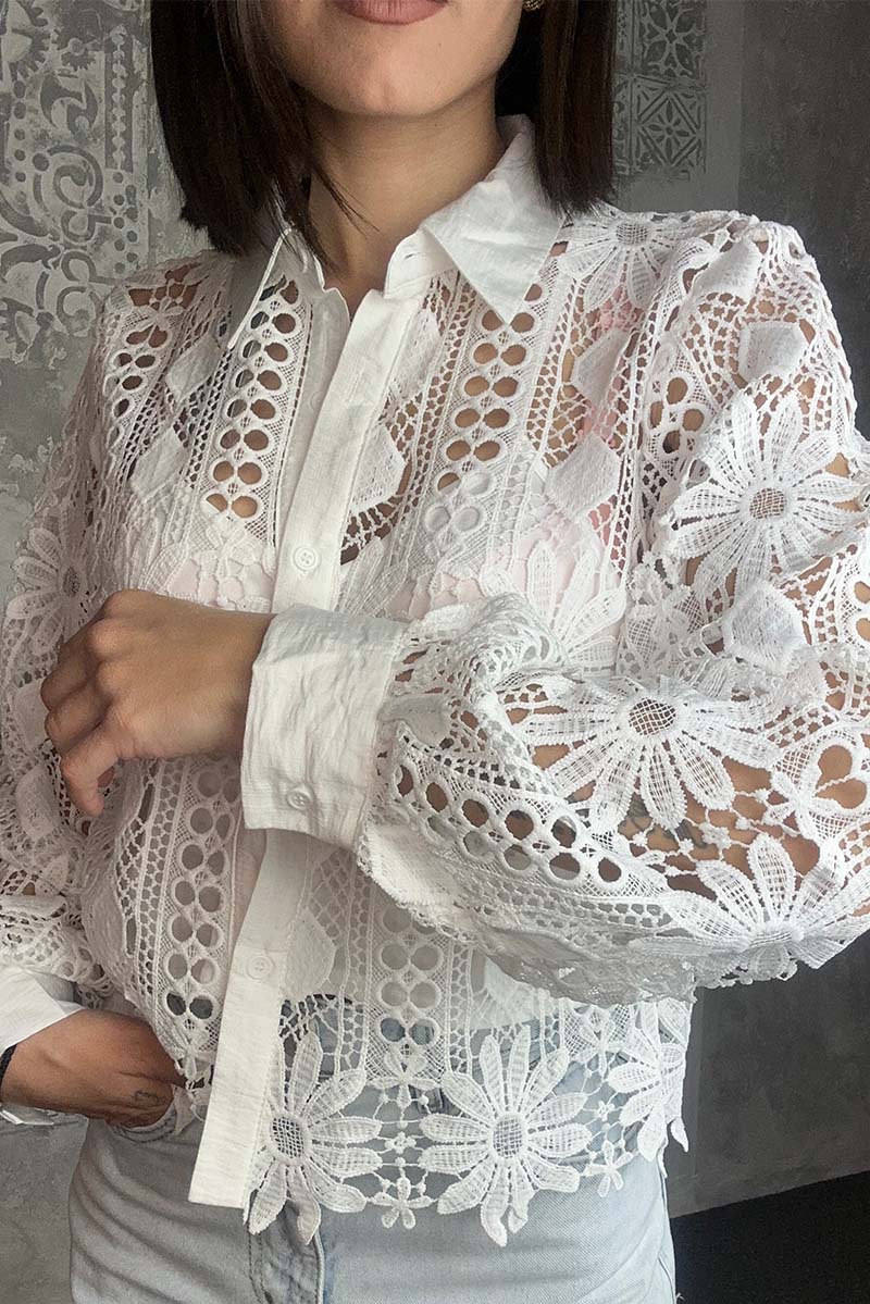 Tο Serena Pure είναι η πιο καθαρή εκδοχή ρομαντισμού και κομψότητας. Σε φυσικό off-white χρώμα και με περίτεχνα δαντελένια μοτίβα, αυτό το πουκάμισο χαρίζει φωτεινότητα και διαχρονικό στυλ. Η στενή του γραμμή αγκαλιάζει όμορφα τη σιλουέτα, ενώ η διαφάνεια και η ανάγλυφη υφή προσθέτουν φινέτσα και θηλυκότητα σε κάθε σου εμφάνιση. Φόρεσέ το με τζιν για πιο casual ρομαντικά looks ή με tailored παντελόνι για βραδινό dinner outfit.